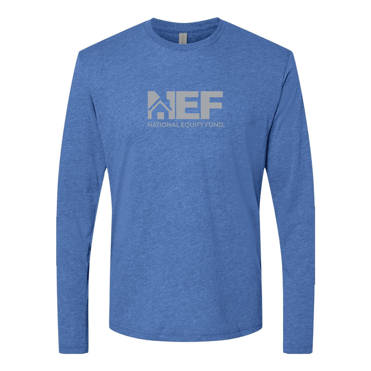 This super soft and comfy triblend long-sleeved crew is made of a 50/25/25 polyester/combed ringspun cotton/rayon blend.